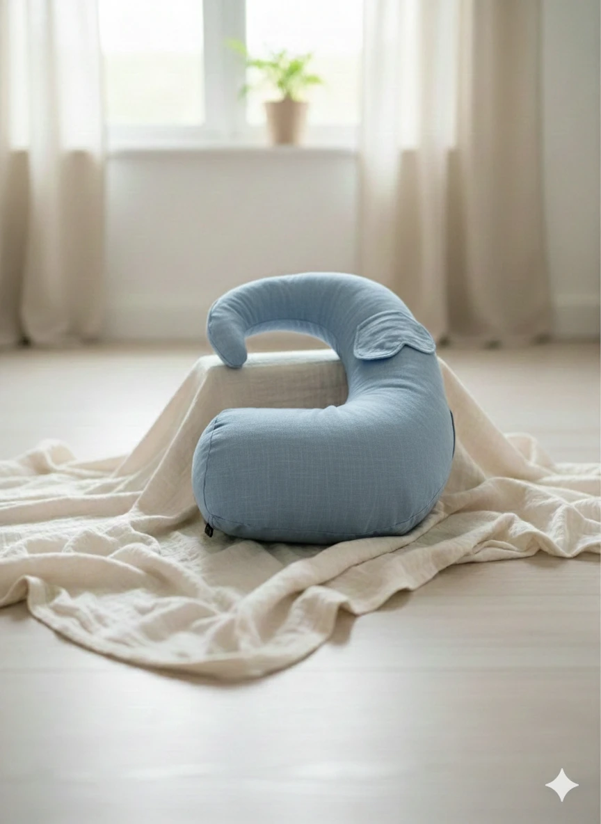 Wąska część poduszki („trąba”) sprawia, że mama może swobodnie oprzeć plecy i podtrzymać kręgosłup na całej długości – co daje ogromny komfort, szczególnie przy długich sesjach karmienia.